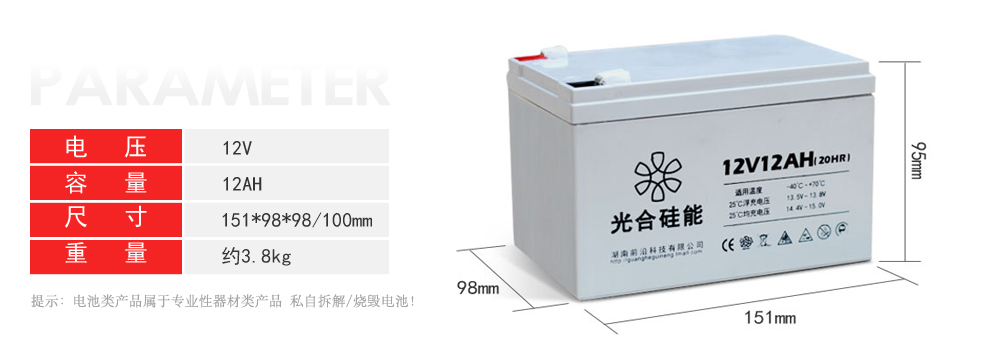 它的内阻比铅酸蓄电池小30%~50%。极小的内阻使得光合硅能蓄电池系列产品的大电流充放电性能、自放电性能 、抗衰减性能、浮充性能、使用寿命、安全性能均优于目前正在使用的国内外铅酸蓄电池和胶体蓄电池。对于气温环境和地域环境具有极强的适应能力, 可于海底6000米以上和海拔4000米以下环境使用;在-40℃~70℃范围内仍可正常工作;在环境温度-40℃条件下,容量仍可保持在40%以上。自放电小, 完全充电后,常温存放2年仍可正常使用;在正常使用情况下,浮充运行可达10年以上,动力系列循环充电次数大于400充次, 军供蓄电池按维护方案循环充电次数可达700充次以上。 贮存期和使用寿命为现有蓄电池的两倍以上。 资源是有限的,新技术的发展要以资源可再生为前提。 锂资源有限,锂离子废旧电池目前基本无法回收, 即使回收,成本太高,如果锂离子电池不解决回收问题,将会严重污染环境。 光合硅能电池主要材料铅回收率超过99%, 是世界上回收率最高的电池, 随着技术的发展和国家环保的要求,回收率有望接近99.9%。密封、免维护、极大地减少了蓄电池维护工作量和维护费用, 减少了因维护不良造成的蓄电池损坏。 荷电状态出厂与贮存,启动时无需添加电解液,初充电准备时间是现有蓄电池的1/20,安装方便,即装即用。